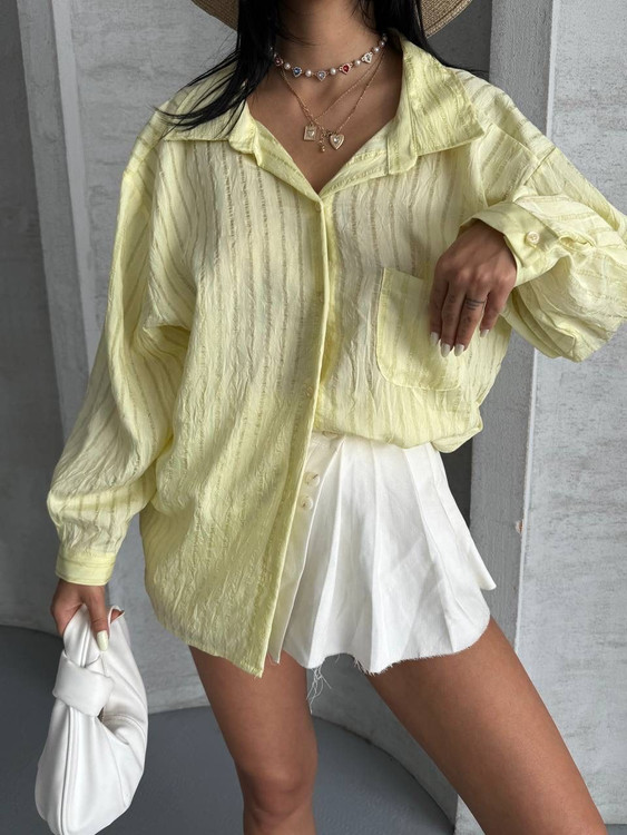 این شومیز در چهار رنگ پرطرفدار آبی، صورتی، قهوهای و زرد عرضه میشود تا بتوانید به راحتی آن را با استایل خود ست کنید.