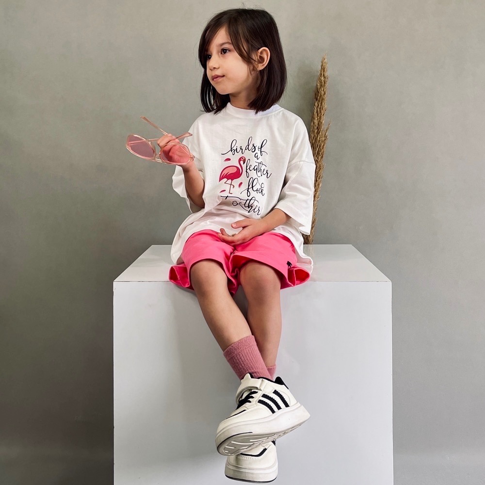 این ست زیبا و راحت، انتخابی عالی برای دخترهای خوشسلیقه است. ترکیب تیشرت پنبهای یکرو با شورتک دورس لاکرا، هم ظاهر شیک و هم راحتی فوقالعادهای برای کودکان فراهم میکند.