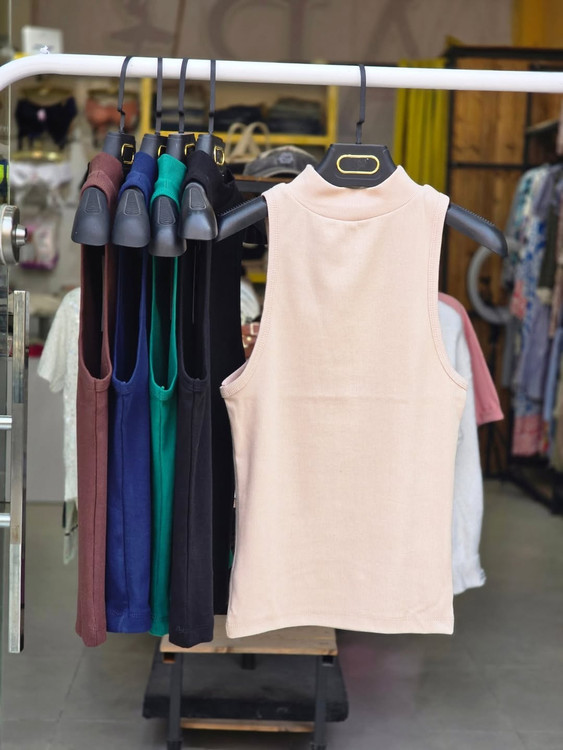 تاپ بلند یقه ۳ سانت جنس کبریتی کش بافت با قابلیت استفاده تا سایز ۴۲ و قد ۵۹