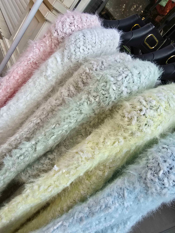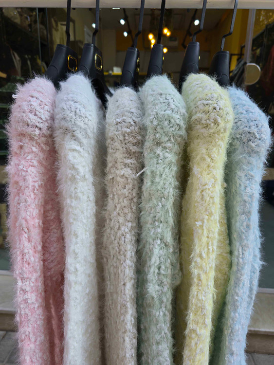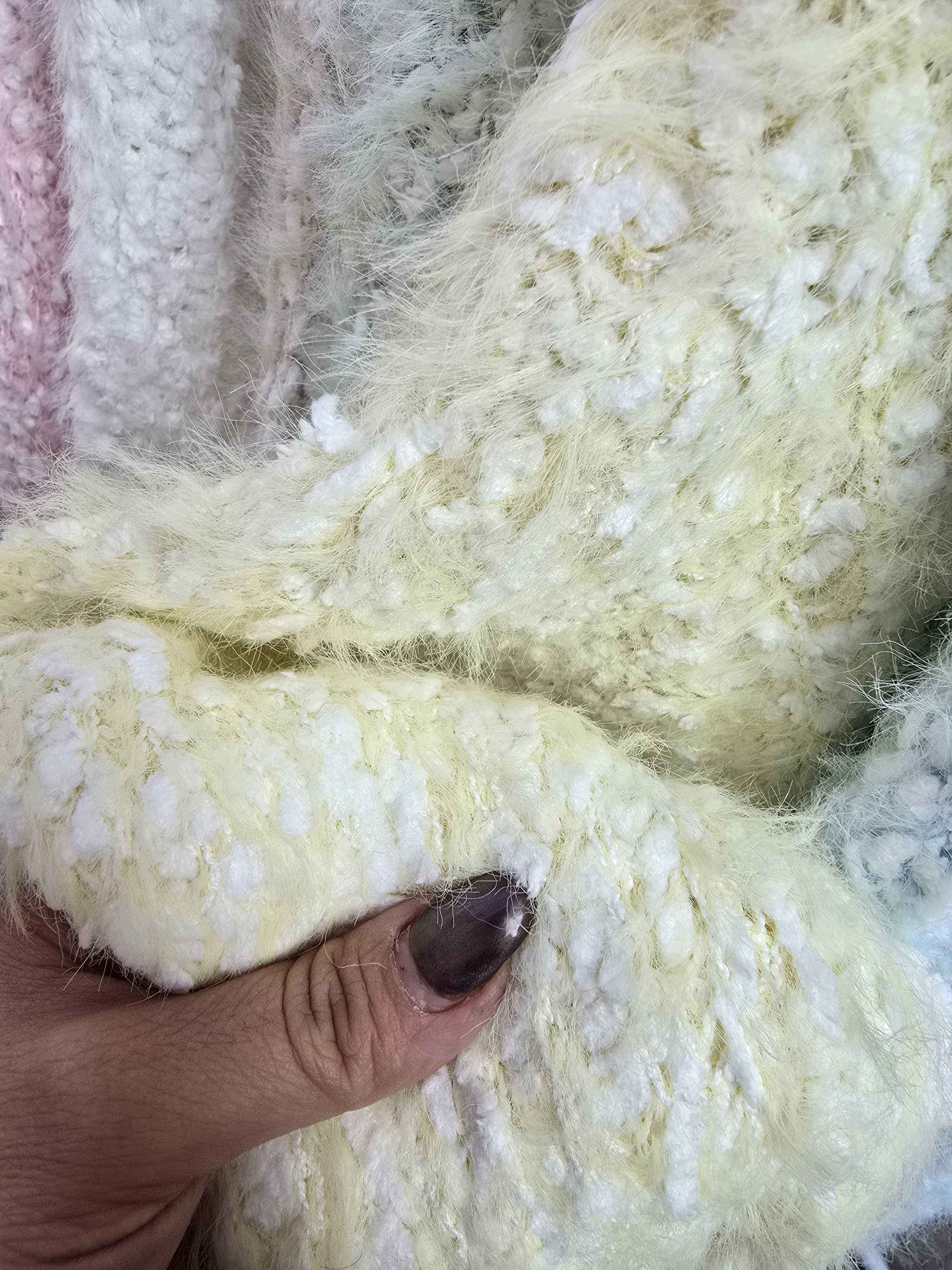 این مدل از نخ پرزدار (بوکله موهر) با بافت درشت و برجسته تولید شده که هم ظاهر خاص و لاکچری به کار میده و هم حس نرمی و گرمای دلنشینی روی پوست ایجاد میکنه.